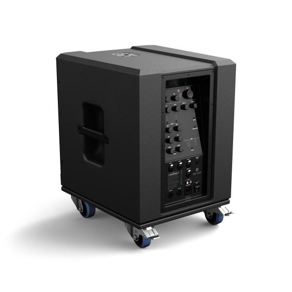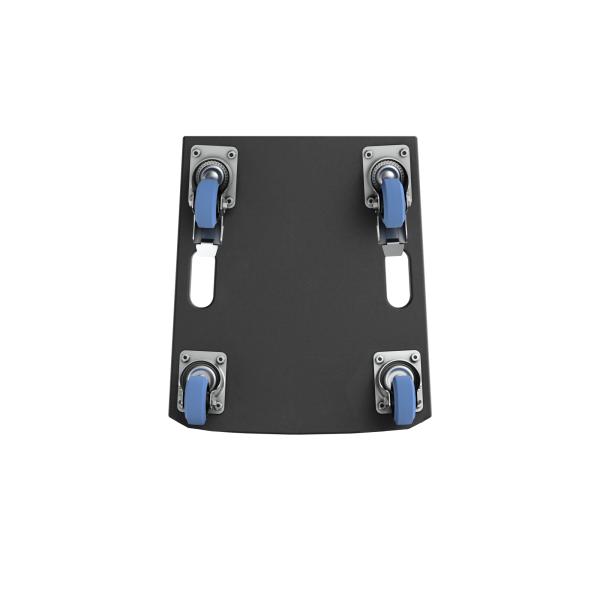 Quatre roulettes pivotantes très résistantes de 80 mm, dont deux sont équipées de freins de blocage, permettent de déplacer facilement le caisson de basses et de le ranger en toute sécurité.
