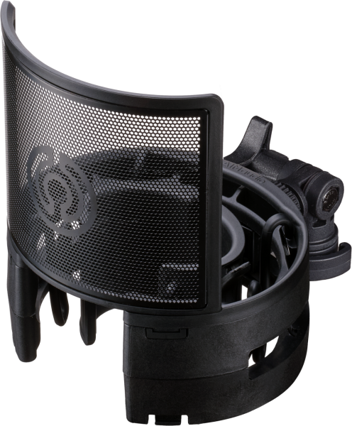 Le kit inclut également le SENTRY, un filtre anti-pop magnétique conçu pour contrôler les plosives les plus marquées. Sa structure en acier inoxydable traité, percée de micro-ouvertures hexagonales, optimise le flux d'air tout en préservant la clarté vocale. Courbé autour du micro, il suit naturellement les mouvements du chanteur et se fixe par aimants haute précision, sans risque d'interférence électronique. Pour les sessions sans filtre, Aim Audio propose l'anneau magnétique Resorber, qui neutralise les éventuelles résonances restantes.