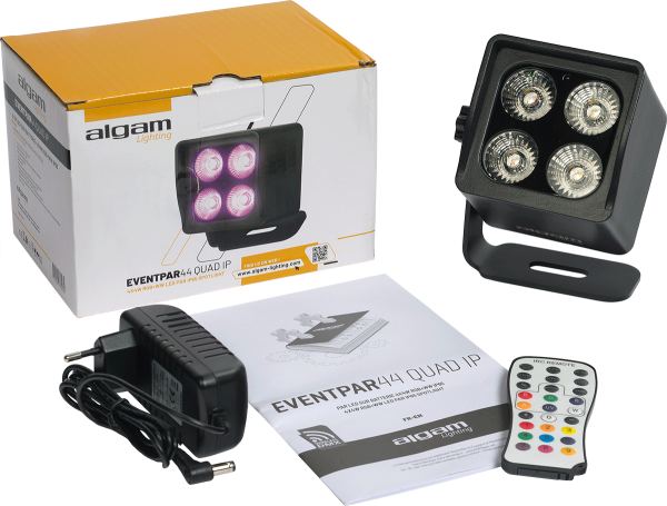 Avec ses lignes discrètes, son format compact, sa batterie intégrée, la protection IP65, le Wireless DMX, sa télécommande de contrôle et son embase bien pensée autorisant une installation au sol comme sur une structure, cet EVENT PAR 44 QUAD IP offre une flexibilité d'installation sans équivalent. Installez-le où vous le souhaitez, appairez la machine en WDMX ou déclenchez l'un des modes disponibles avec la télécommande fournie, et le spectacle peut commencer !