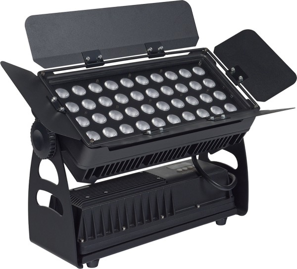 Le FL600V-IP est avant tout un projecteur LED pensé pour les applications d'éclairages architecturales, telles que les monuments, les châteaux, les théâtres, dont les surfaces à couvrir sont importantes. Les 40 LED de 15W RGBW sont parfaites pour cette application, générant un puissant faisceau lumineux aux couleurs éclatantes, pouvant être précisément orienté grâce au berceau inclinable et aux 4 volets en métal pour gérer précisément l'angle du faisceau lumineux. Parfaitement protégé des intempéries et de la poussière grâce à son indice de protection IP65, le FL600V-IP est capable d'assurer un éclairage en toute circonstance.