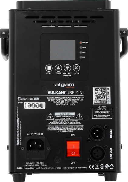 l’œil, que ce soit sur scène, en club ou lors d’un événement privé. Cette machine accepte tous les types de liquides : faible, moyenne et haute densité ainsi que le liquide à dissipation rapide.