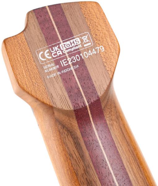 Son corps de type solid body est en Erable rouge agrémenté d'une belle table en loupe de Peuplier, son manche vissé est constitué de sept pièces combinant Erable torréfié / Amaranthe / Noyer, sa touche en Erable torréfié est serti de 24 frettes. Elle est équipée de micros Bartolini® MK-1 et d'un préampli actif avec une égalisation trois bandes. Qualité et flexibilité sonore.