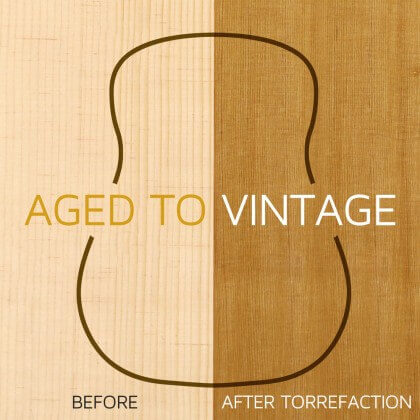 La caisse est constituée d'Epicéa Adirondack AA torréfié et de Cocobolo AAA, le manche est en Acajou et la touche en Ebène (essences massives).
