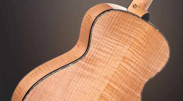 La caisse est constituée d'Epicéa Engelmann torréfié et d'Erable flammé AAA, le manche est en Acajou et la touche en Ebène (essences massives).