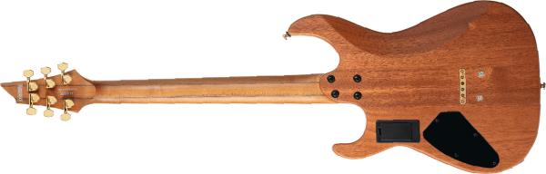 Elle est pourvue d'un corps en Acajou africain rehaussé d'une table en Frêne de 15mm d'épaisseur, d'un manche vissé cinq pièces Erable torréfié / Noyer, d'une touche en Ebène sertie de 24 frettes en acier inoxydable, d'extrêmement flexibles micros double-bobinage Fishman Fluence Modern, d'un chevalet fixe Schaller Hannes 6, de mécaniques à blocage et cerise sur le gâteau de repères bord de manche fluorescents "Luminlay side dot".
