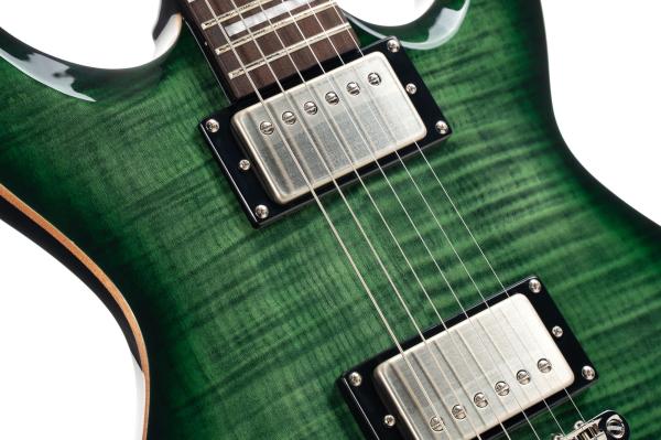 La CORT M600 combine un tempérament tonal vintage à une jouabilité moderne. Sa lutherie traditionnelle associe un corps et un manche collé en Acajou, une belle table en Erable flammé et une touche en Palissandre (diapason 24.75", 22 frettes).