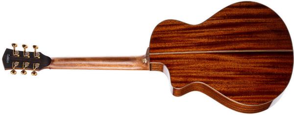 La caisse constituée d'Epicéa européen et d'Acajou (essences massives) est munie d'ouvertures latérales qui ont pour effet d'améliorer la résonance générale de l'instrument, et la diffusion du son de façon plus homogène. La table d'harmonie est chanfreinée pour un confort optimal.