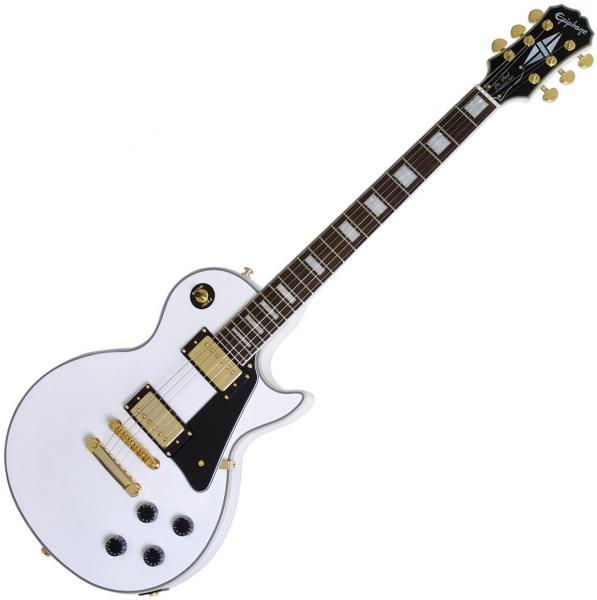 Révisée en 2012, la guitare électrique EPIPHONE Les Paul Custom Pro (Alpine White) offre une esthétique évoquant la Gibson Les Paul Custom originale, combinée avec une lutherie traditionnelle type Les Paul Standard et une électronique très versatile grâce à des fonctions push-pull (coil-split et phase accessibles sur les tonalités de chaque micro).