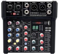 - Entrées : 2 combos XLR/Jack, 2 Jacks mono 6.35mm, 1 AUX jack 3.5mm