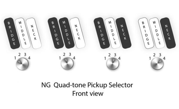 - Contrôles : Vol, 4-way rotary pickup selector, Bass, Mid, Treble, Active/Passive switch