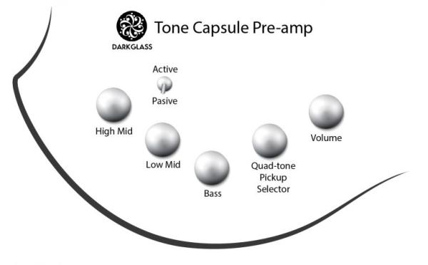 - Contrôles : Vol, 4-way rotary pickup selector, Bass, Mid, Treble, Active/Passive switch