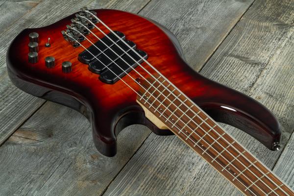Basse électrique solid body 5 cordes DINGWALL Combustion 5 3-Pickups (CB3-VB5P), électronique active/passive EMG, corps Frêne "Swamp Ash", manche Erable 5 pièces haute stabilité, touche Pao Ferro multi-diapason 24 frettes en éventail.