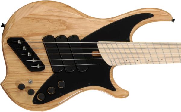 Basse électrique solid body cinq cordes, électronique active/passive, corps Frêne "Swamp Ash", manche Erable cinq pièces haute stabilité, touche Erable ou Pau Ferro multi-diapason, 24 frettes en éventail.