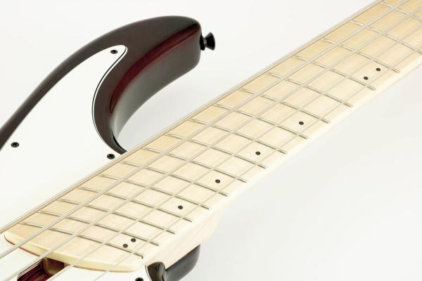Basse électrique solid body cinq cordes, électronique active/passive, corps Frêne "Swamp Ash", manche Erable cinq pièces haute stabilité, touche Erable ou Pau Ferro multi-diapason, 24 frettes en éventail.