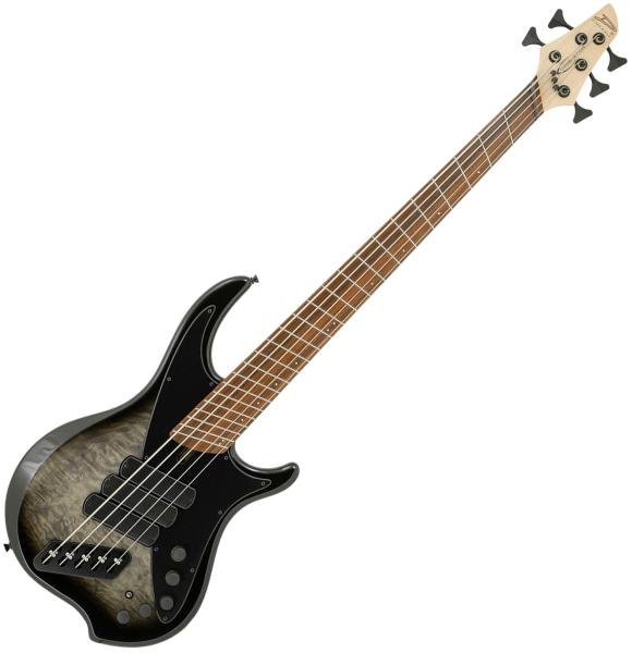 Basse électrique solid body cinq cordes, électronique active/passive, corps Frêne "Swamp Ash", manche Erable cinq pièces haute stabilité, touche Erable ou Pau Ferro* multi-diapason, 24 frettes en éventail.