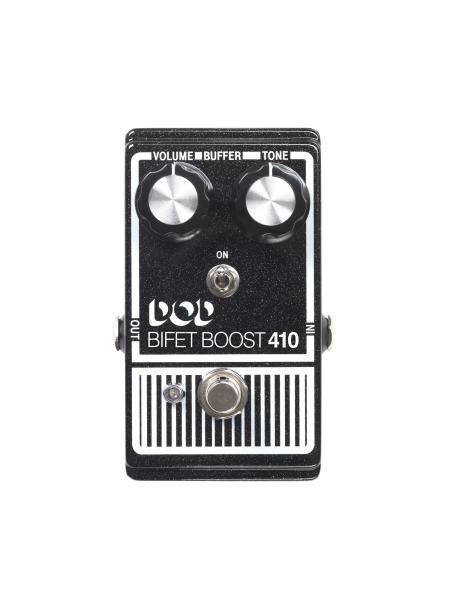 Malgré sa simplicité apparente, la 410 regorge de fonctionnalités. Outre un boost généreux, elle intègre un contrôle de tonalité « tilt » et un système de buffer unique. Lorsque le commutateur Buffer est activé, le buffer reste toujours actif, même en bypass. À l'inverse, lorsqu'il est désactivé, la pédale est en true bypass. La 410 peut ainsi être utilisée comme boost avec ou sans buffer, driver de ligne, buffer autonome ou encore comme un embellisseur de son permanent, avec ou sans buffer. Bien plus qu'une simple pédale d'effet ! Inspirée du modèle vintage des années 70, la 410 a plus d'un tour dans son sac.