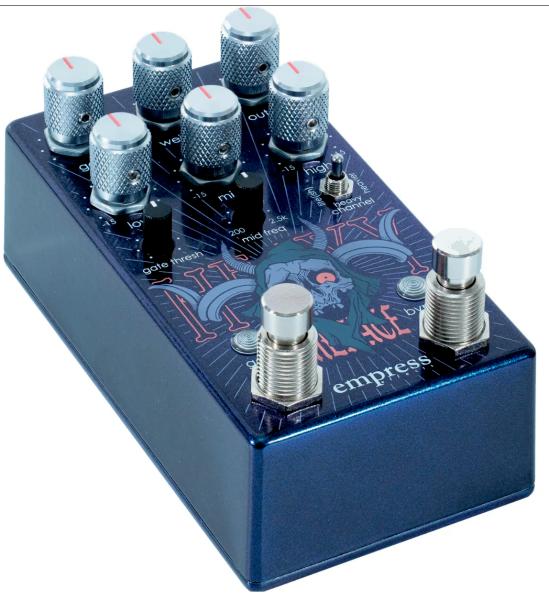 Proposée en édition limitée à 350 exemplaires dans une finition spéciale, l'EMPRESS EFFECTS Limited Edition Heavy Menace est une évolution de la Empress Heavy. C'est probablement une des pédales haut de gamme les plus polyvalentes si vous cherchez une saturation high-gain. Du Hard -Rock 70's au Metal le plus actuel, vous trouverez le son que vous cherchez depuis si longtemps.