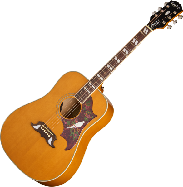 La guitare folk électro-acoustique EPIPHONE Inspired by Gibson Dove Studio (EASDVANNH1) en est une héritière directe, d'excellente facture, proposée à un tarif très attractif.