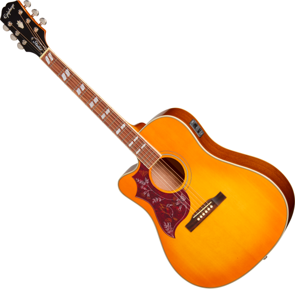 La guitare folk électro-acoustique EPIPHONE Inspired by Gibson Hummingbird Studio EC Left Handed (EASHCHCNH1L) en est une héritière directe, d'excellente facture, proposée à un tarif très attractif.