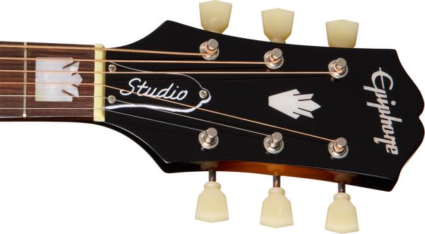 Cette séduisante SJ-200 Studio produit de belles sonorités amples, claires dans une lignée intermédiaire entre les emblématiques Gibson J-200 et Hummingbird.