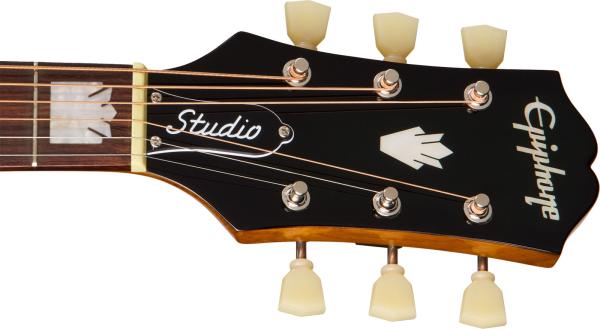 Cette séduisante SJ-200 Studio produit de belles sonorités amples, claires dans une lignée intermédiaire entre les emblématiques Gibson J-200 et Hummingbird.