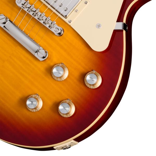 Supervisée en détail par Gibson, la guitare électrique solid body EPIPHONE Inspired By Gibson Les Paul Standard 60s Figured (EIGLP6ITNHR) propose à un tarif très accessible les sonorités et les sensations de jeu caractéristiques de la mythique Les Paul Standard du début des années 1960.