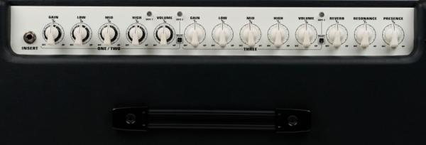 - Contrôles indépendants pour les canaux 1 & 2 (potentiomètres concentriques) : Volume, Gain , Low, Mid, High, Gate