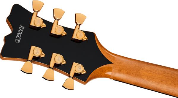 Guitare électrique demi-caisse avec bloc central, fabriquée au Mexique.