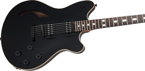 C'est une semi-hollow body compacte dotée d'une caisse en Nyatoh (variante Acajou), d'une table en Erable, d'un manche vissé en Erable torréfié (façon Fender©) et d'une touche en Palissandre 22 frettes (diapason 24.75" façon Gibson©).