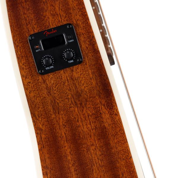 Vous pourrez aisément et efficacement l'amplifier grâce au pré-ampli Fender embarqué qui permet de contrôle volume, la tonalité et d'accorder l'instrument.
