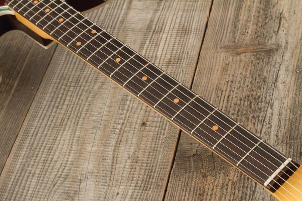 Guitare électrique solid body, corps en Aulne deux pièces "sort for lightweight", manche vissé en Erable rift-sawn, touche Palissandre AAA "sort for dark" (profil 1959 Large C, frettes narrow-tall, radius 9.5"), micros bobinés main Custom Shop Hand-wound '58 Tele.