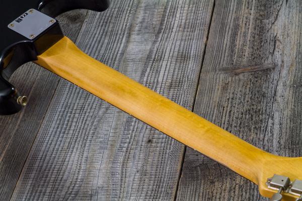 Elaborée à partir d'une matrice "1960 Stratocaster Base Model", la FENDER Custom Shop Time Machine 1963 Stratocaster Relic Black Over HLE Gold #R143861 (9237003351) est la réinterprétation d'une Fender typique du début des années 1960. Elle combine idéalement une majorité de caractéristiques vintages et d'autres plus actuelles. Elle se distingue par un corps en Aulne, une touche en Palissandre "sort for dark", des micros Fat 60's et un profil de manche "60's Oval C".