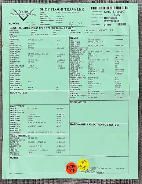 - Vendue avec étui Fender Custom Shop Brown (Blue interior), courroie Fender Custom Shop et COA