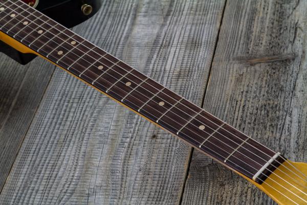 Elle se distingue par un corps en Aulne, une touche en Palissandre AAA "sort for dark", un profil de manche 60's Oval C, un radius de 9.5" et des micros Custom Shop '63 Tele.
