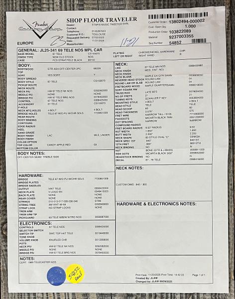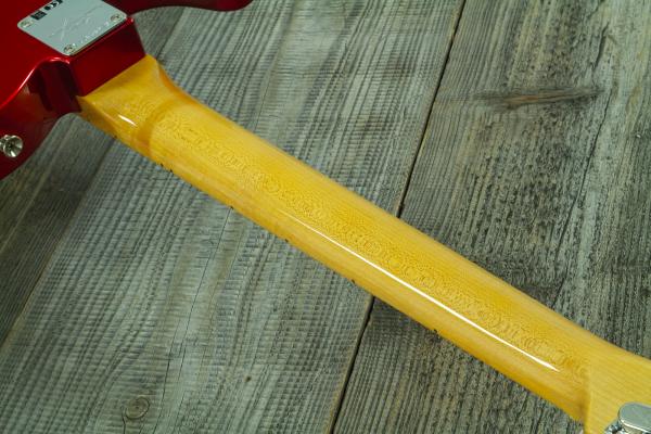 Elle se distingue par un corps en Frêne "Swamp Ash / sort for lightweight" , un manche et une touche en Erable quarter-sawn, un profil de manche 60's Oval C, un radius de 9.5" et des micros bobinés à la main Custom Shop hand-wound '67 Tele.