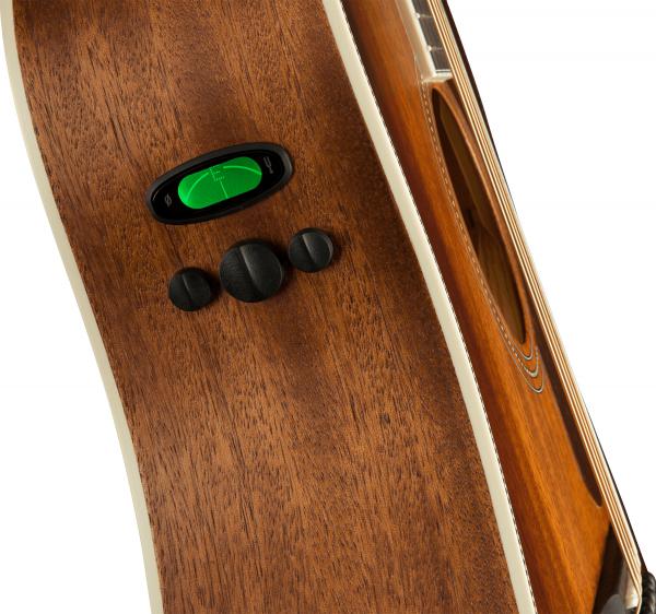 La FENDER Paramount PM-1 Dreadnought All-Mahogany NE (0970412337) est une guitare folk électro-acoustique de type Dreadnought pourvue d'un ensemble table/fond/éclisses/manche en Acajou massif, touche/chevalet en Ovangkol, et d'un pré-ampli Fishman PM avec accordeur.