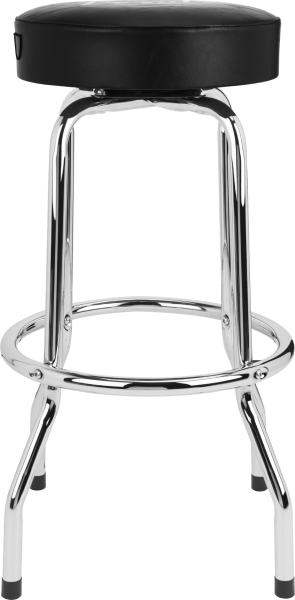 Ce tabouret noir classique, avec son logo spaghetti blanc emblématique et ses pieds chromés, trouvera parfaitement sa place chez vous, au bureau, en studio ou dans votre salle de concert. À votre santé !