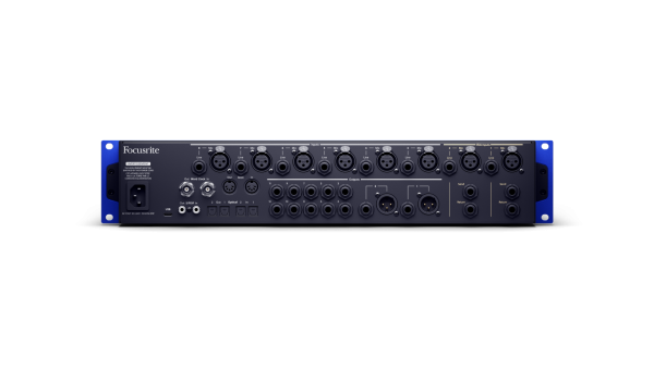 L’ISA C8X est également pensée pour les installations permanentes et en baie. Elle offre pour cela des entrées ligne qui vous permettront de brancher définitivement du matériel externe et ainsi éviter de reconfigurer constamment votre patch. Pour les formats immersifs, les 12 sorties ligne symétriques vous serviront à travailler sur des projets allant du mono jusqu’en 7.1.4, avec jusqu’à trois groupes d’enceintes de monitoring que vous pourrez commuter aussi bien depuis la façade qu’avec le logiciel Focusrite Control 2. L’ensemble du système est en outre extensible, grâce à 16 canaux supplémentaires disponibles en ADAT et à deux autres via S/PDIF pour les équipements numériques. Sans oublier les E/S MIDI et Word Clock.