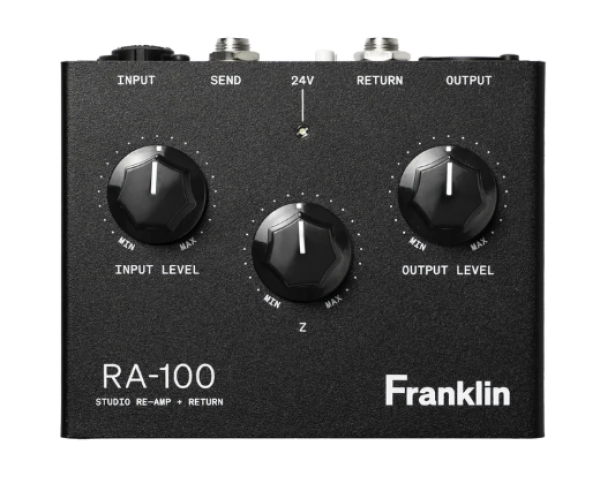 Le Franklin Audio RA-100 est une interface re-amp et return tout-en-un conçue pour intégrer facilement des chaînes d’effets externes, notamment des pédales, dans votre workflow de production audio. Il simplifie l’utilisation de vos pédaliers, processeurs d’effets ou amplis avec une station de travail audio (DAW) ou une console, en prenant en charge à la fois l’envoi et le retour du signal avec des entrées/sorties équilibrées à transformateur pour une large plage dynamique et une grande qualité sonore.