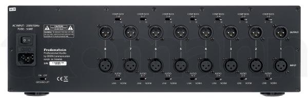 À l’arrière du châssis, vous trouverez des commutateurs intelligents de routage audio, permettant de relier facilement les modules entre eux pour créer des chaînes de traitement (daisy-chain), ainsi que des liaisons de bus pour compresseurs pour configurer des traitements stéréo ou groupés. Un interrupteur ground-lift est également présent pour résoudre d’éventuelles boucles de masse.