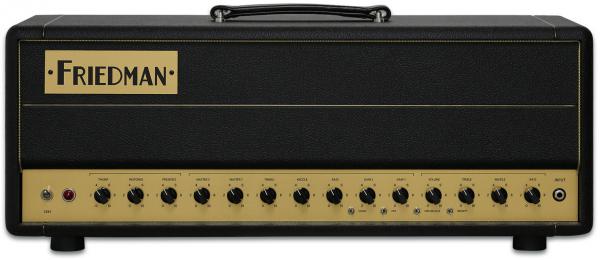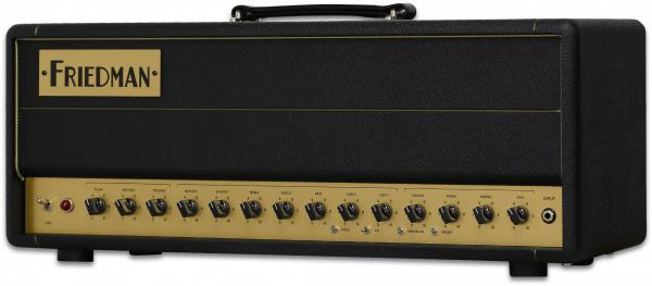 Fabriquée et câblée à la main aux USA à partir des meilleurs composants, la tête d'amplification pour guitare électrique 25/50-watts / tout lampes / 3 canaux FRIEDMAN BE 50 Deluxe Head combine les circuits de saturation des modèles Friedman BE, HBE et les son clairs de la Buxom.