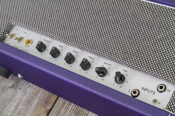 40-watts, tout lampes (5881), mono-canal. Basée sur un JTM45, la tête d'amplification pour guitare électrique FRIEDMAN Dirty Shirley Head (Purple) produit de magnifiques sonorités de style Vintage-British années 60/70. Des sons clairs cristallins et crunchs légers à parfaits pour Blues & Country, et des sons distordus JMP/JCM grande époque, avec ce supplément de saturation et d'agressivité potentiel qui a fait le renom de Friedman.