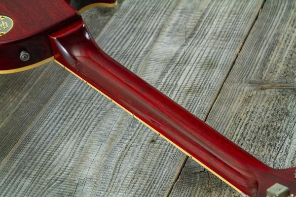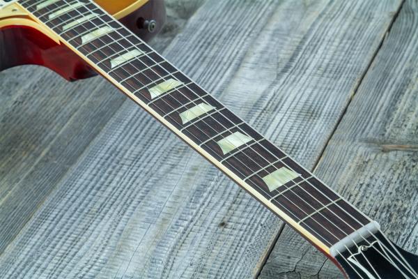 Le verni nitrocellulose, comme sur les Gibson d'époque, joue un rôle majeur dans la 'respiration' de l'instrument grâce à sa nature poreuse (les vibrations ne sont pas étouffées par la laque). Ce verni est par contre relativement sensible au contact des plastiques et mousses de certains stands, ainsi qu'à certains produits d'entretien trop détergents.