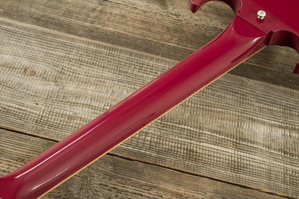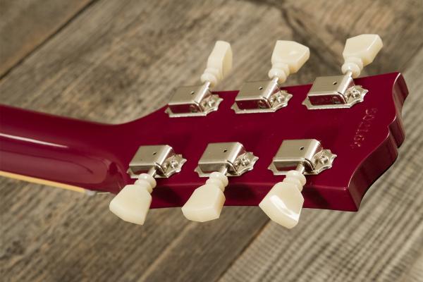 Construction millimétrée (jointure "Long Neck Tenon", colle "hot hide glue*"), dimensions scannées au laser, composants de grade supérieur (corps et manche en Acajou massif, touche Palissandre massif, micros Custombucker Alnico III), plastiques recréés chimiquement.