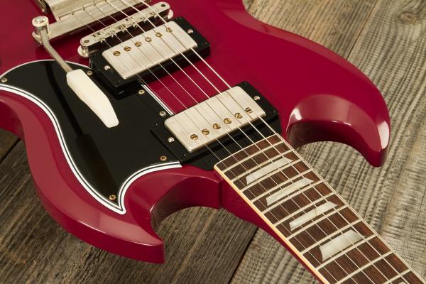 Splendide clone de la SG '64 notamment jouée par George Harrison et Eric Clapton, la guitare électrique solid body GIBSON Custom Shop 1964 SG Standard Reissue W/ Maestro Vibrola (SGSR64PSL22511) est un must pour les amateurs de sonorités vintage qui en en auront pour leur argent, c'est garanti à 100%.