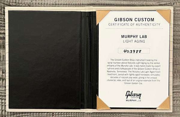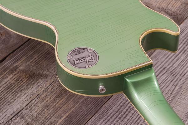 La GIBSON Custom Shop Murphy Lab 1968 Les Paul Custom Reissue, Light Aged (LPC68PSL21884) est proposée dans une singulière et sublime finition Jade Green, inspirée d'un catalogue Oldsmobile de 1959.