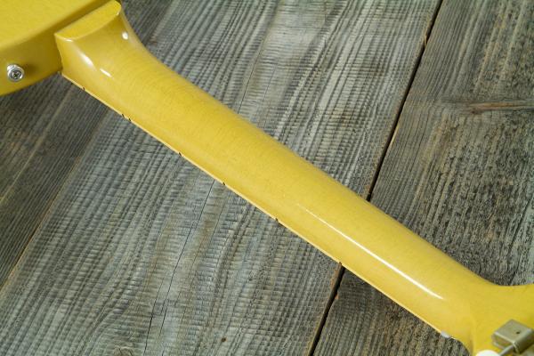 Le verni nitrocellulose, comme sur les Gibson d'époque, joue un rôle majeur dans la 'respiration' de l'instrument grâce à sa nature poreuse (les vibrations ne sont pas étouffées par la laque). Ce verni est par contre relativement sensible au contact des plastiques et mousses de certains stands, ainsi qu'à certains produits d'entretien trop détergents.
