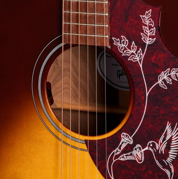 Dans la lignée de la référentielle Hummingbird, la GIBSON Modern Acoustic Hummingbird Studio Walnut (MCSSHSWSWBG) est une guitare folk électro de type Dreadnought "Square Shoulders".