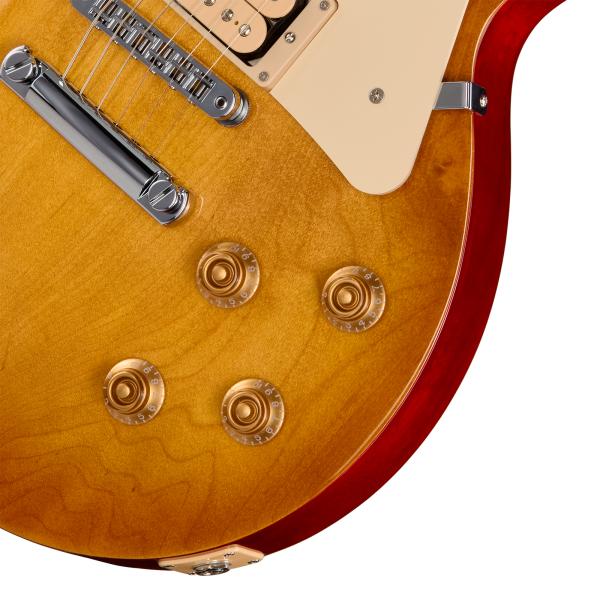 Ergonomique, légère et polyvalente, elle possède corps en Acajou massif de type "Ultra-Modern Weight Relief", table en Erable, manche en Acajou avec profil "SlimTaper", touche en Palissandre 22 frettes, set de micros Gibson Burstbucker Pro agrémentés de potentiomètres de volume push/pull pour activer des options simple ou double bobinage.