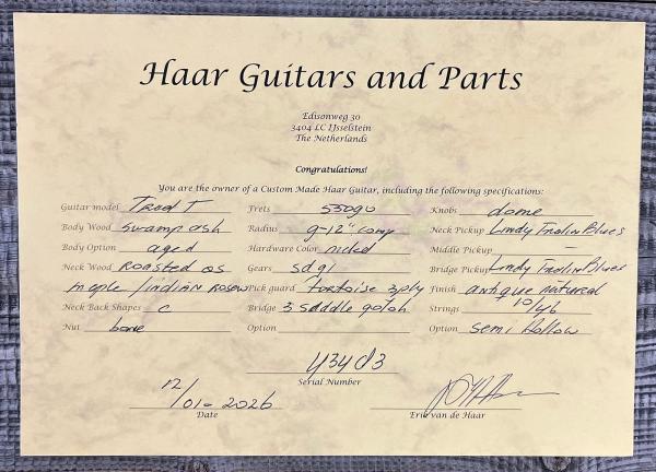 Haar guitars Trad T Thinline #43483 - aged antique natural